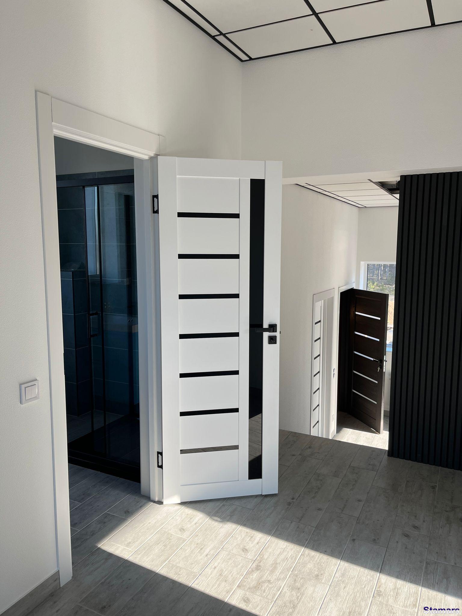 Arkadia baltas durvis ar melno stiklu ir ļoti moderns risinājums un kļūst par jaunāko interjera dizaina tendenci. Baltā krāsa rada tīrības un viegluma sajūtu, savukārt melnais stikls piešķir izteiksmīgu kontrastu un stila akcentu, padarot tās ideālas gan klasiskos, gan mūsdienīgos interjeros.