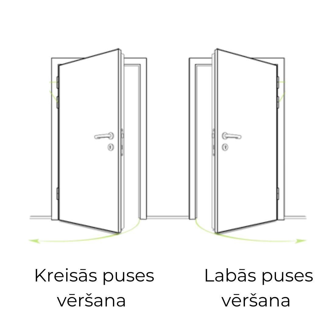 Standarta durvis bez pārfalces, vēršanās virziens – universāls.