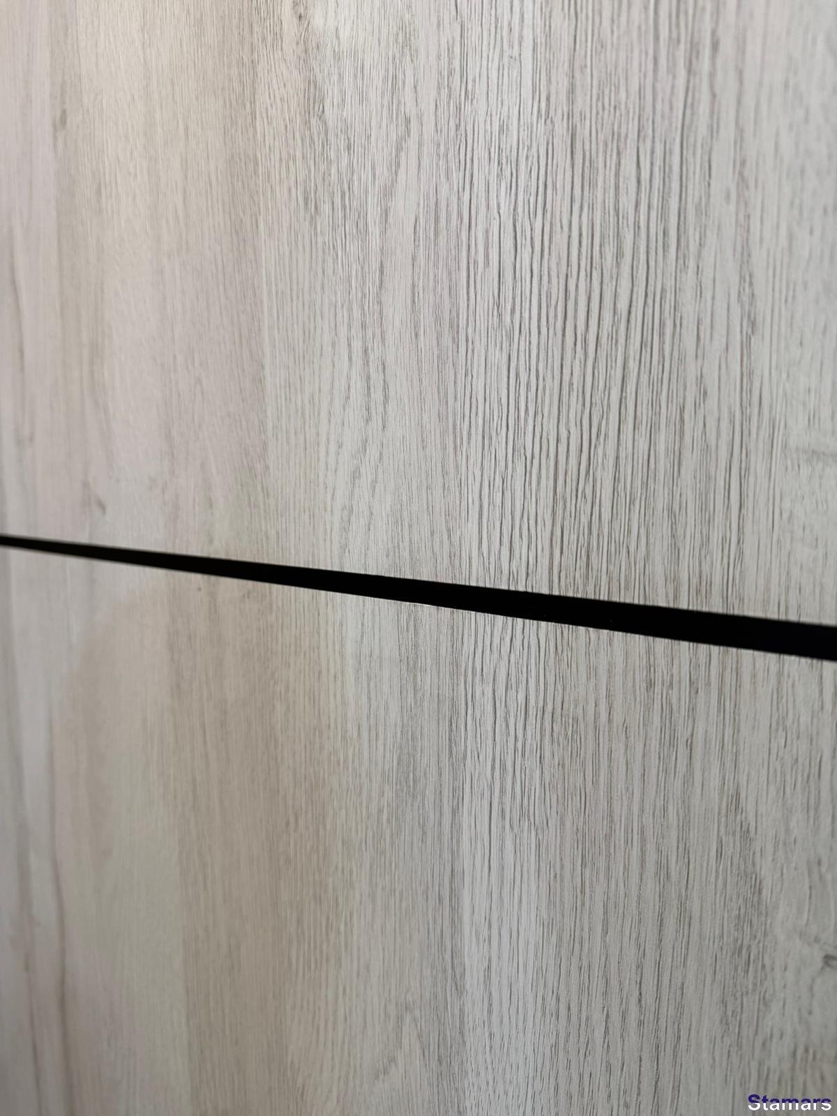 Durvju vērtne pārklāta ar Nano Flex dekoratīvo pārklājumu, kas 3D efektā imitē dabīgā koka tekstūru – to var gan redzēt, gan sajust pieskaroties. Atšķirībā no tradicionālām gludām virsmām, šīs durvis piešķir telpai siltumu un faktūru, saglabājot tajā pašā laikā vieglu kopšanu un augstu izturību.