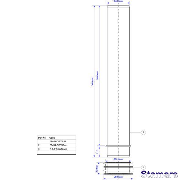 Padeves caurule L-304mm ar blīvi. Izmērs 59x45mm.