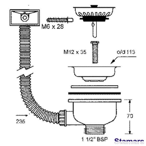 1,1/2″x113 mm izlietnes noteka ar nerūsējošā tērauda sietiņu. Notecina ar taisnstūrveida savienojumu ar noteku.