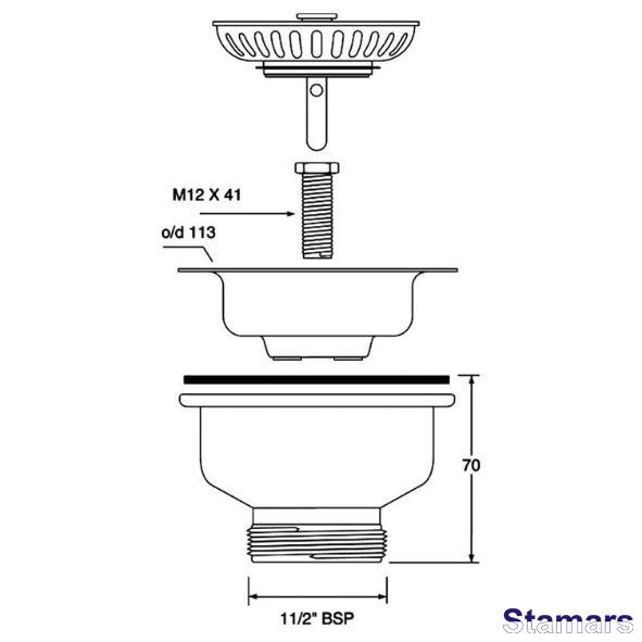 1,1/2″x113 mm izlietnes noteka ar nerūsējošā tērauda sietiņu.