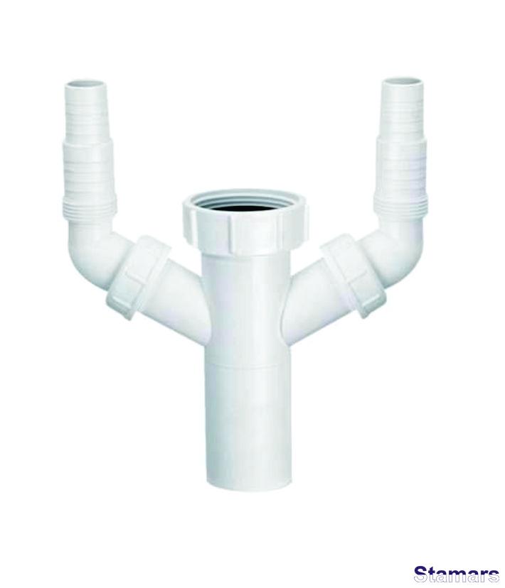 Savienojums ar veļas mašīnu un trauku mazgājamo mašīnu 1,1/2″x40mm. Caurlaide – 80 l/min. ar ūdens stabu 120 mm.