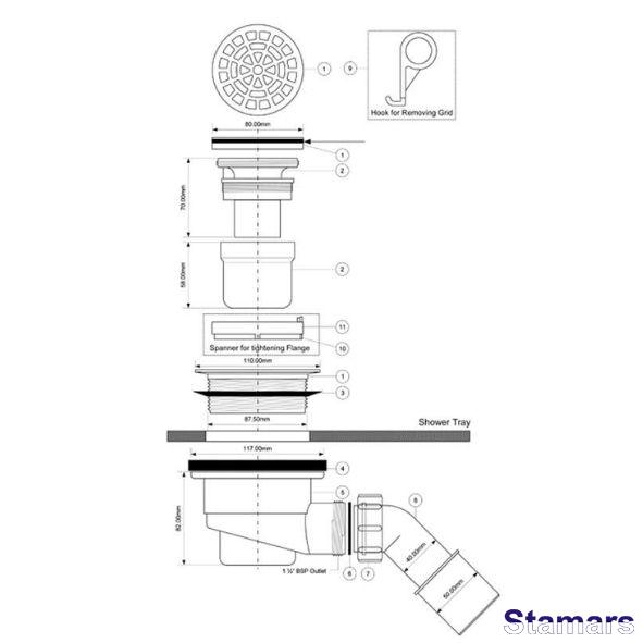 Paredzēts dušas paliktnim ar 90 mm caurumu.
