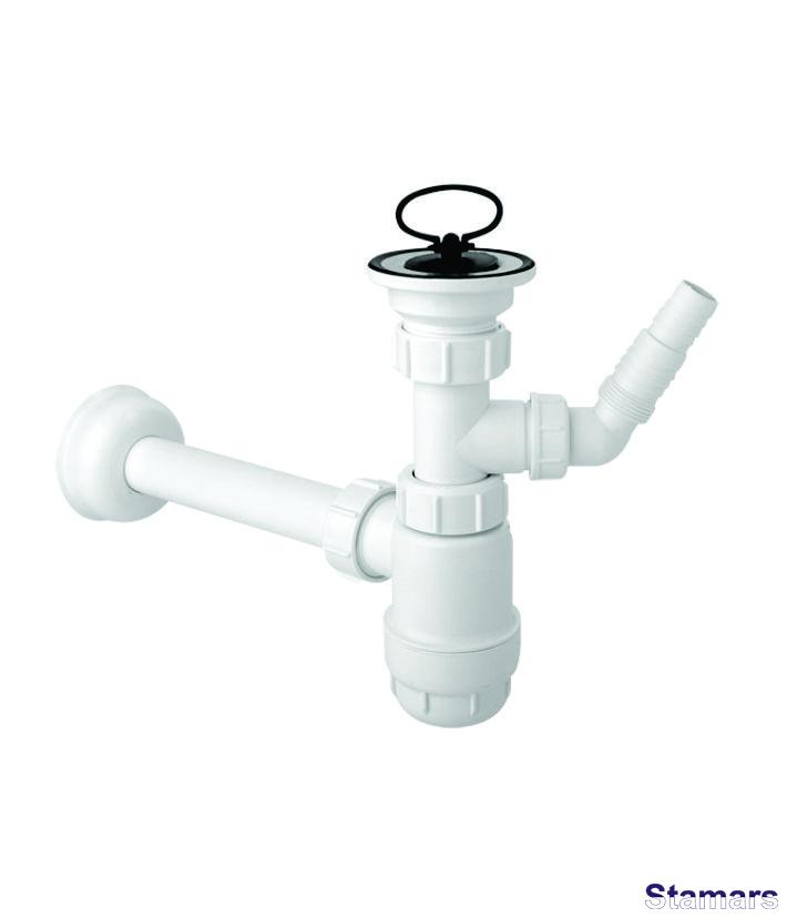 “Zems” pudeļu izlietnes sifons, 1,1/4″x32mm, ar nerūsējošā tērauda sietu, gumijas aizbāzni un savienojumu ar veļas mašīnu vai trauku mazgājamo mašīnu. Plūsmas ātrums 34 l/min. ar ūdens stabu 120 mm.