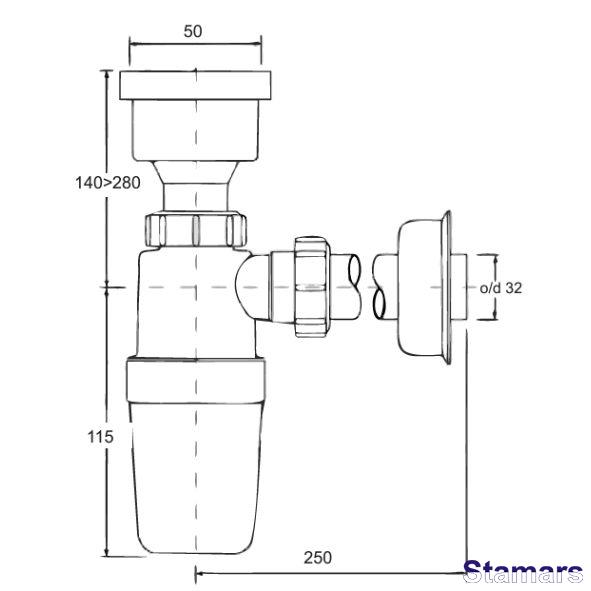 Taisns pisuāra sifons 50x32mm ar lūpu blīvējumu. Caurlaidība – 57 l/min pie 120 mm ūdens staba.