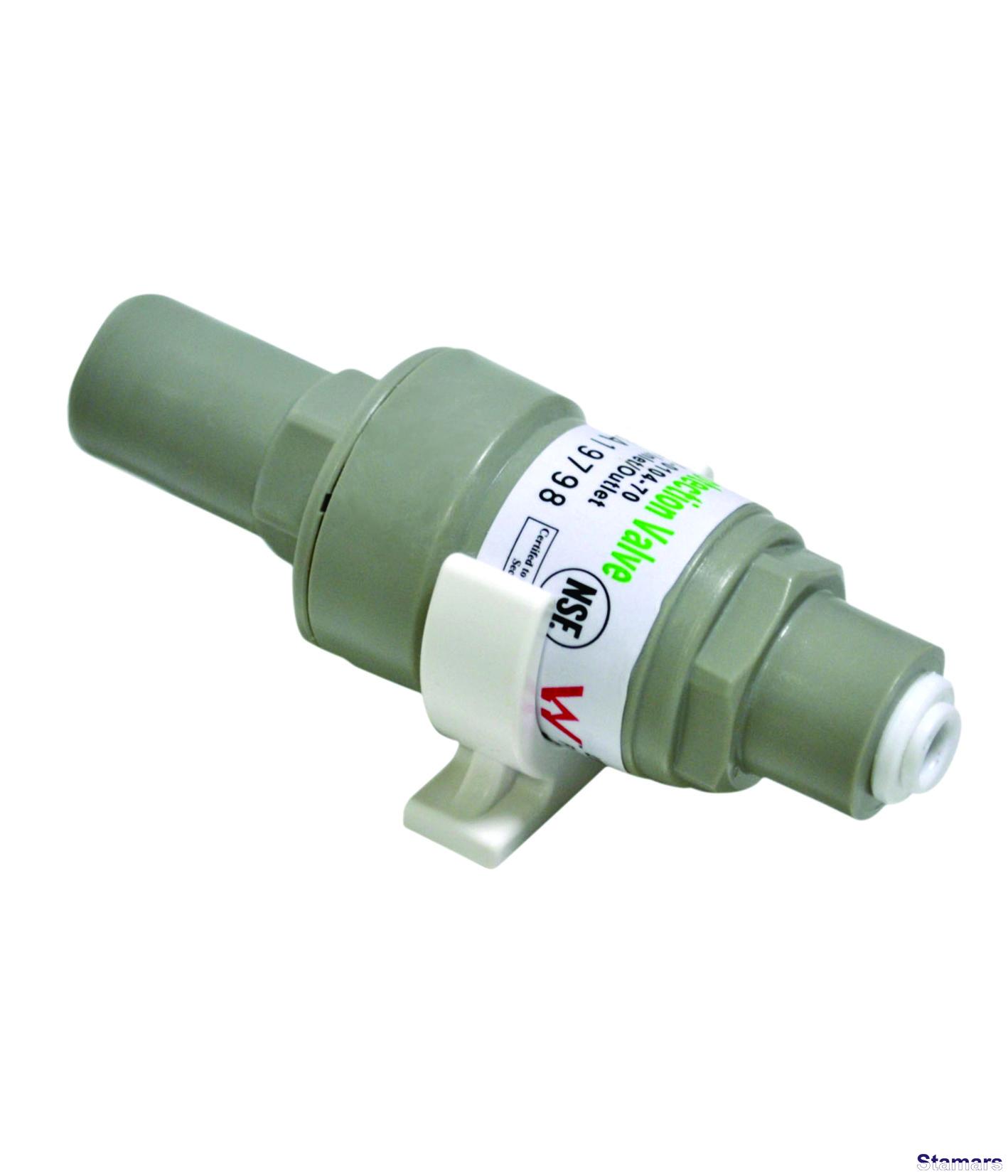 Ūdens spiediena ierobežotājs filtrācijas sistemām un Atgriezeniskā Osmozes filtrācijas sistemām. Ierobežo spiedienu līdz 3.5 bār., pasargajot uzstādītās iekārtas no hidro triecieniem. Maksimāli pieļaujamais ūdens ieejas spiediens – līdz 20 bāri.
