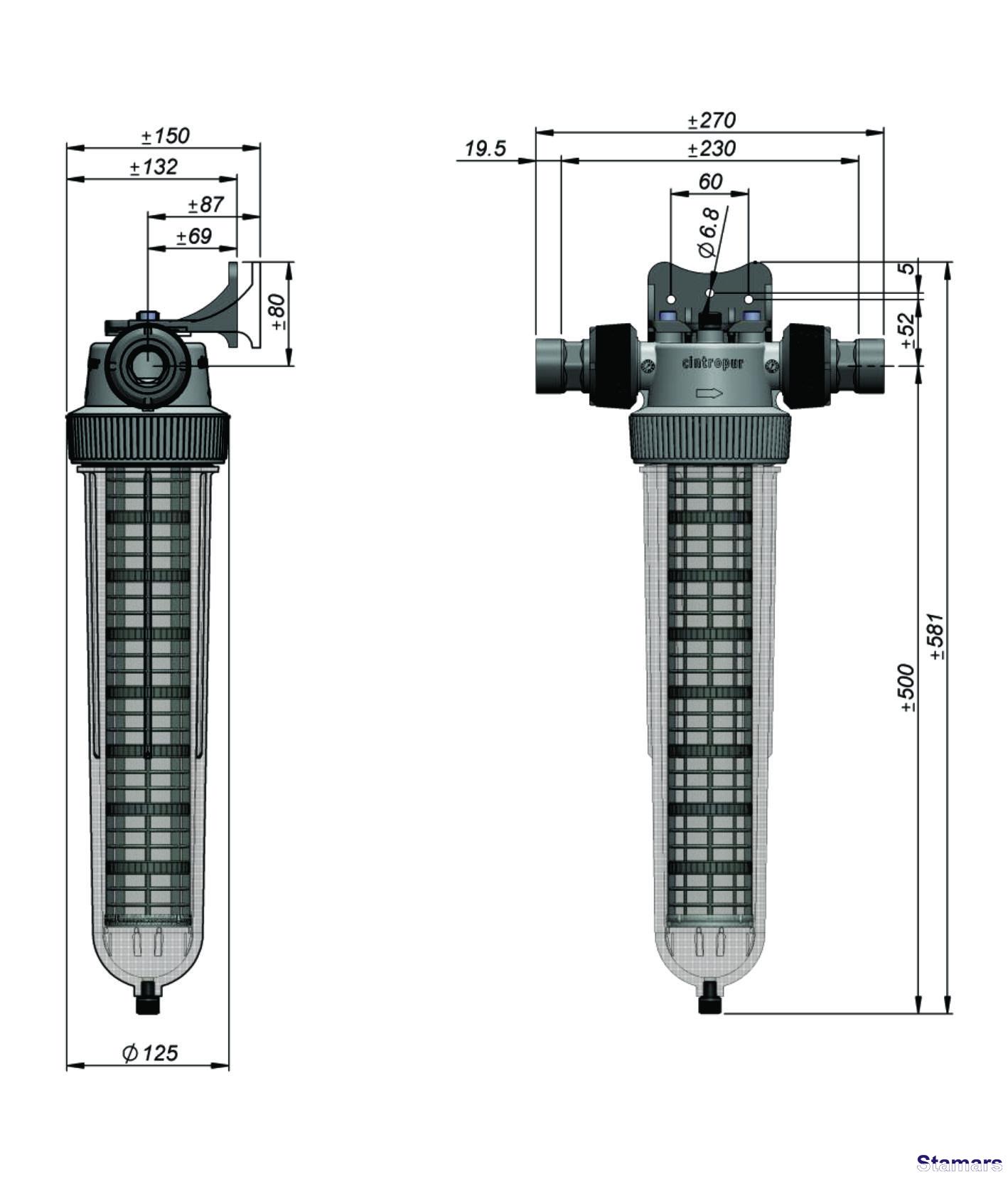 Visi CINTROPUR sērijas filtri ir aprīkoti ar centrifūgu, kas sagriež ienākošo ūdens plūsmu. Lielās piemaisījuma daļiņas, kas atrodas ūdens ienākošajā plūsmā, zem centrbēdzes spēka iedarbības nonāk uz kolbas korpusa un nosēžas tās apakšā, kuras var ērti novadīt kanalizācijā, atverot ventili filtra korpusa apakšā. Mazās daļiņas tiek filtrētas ar speciālu kārtridžu palīdzību.