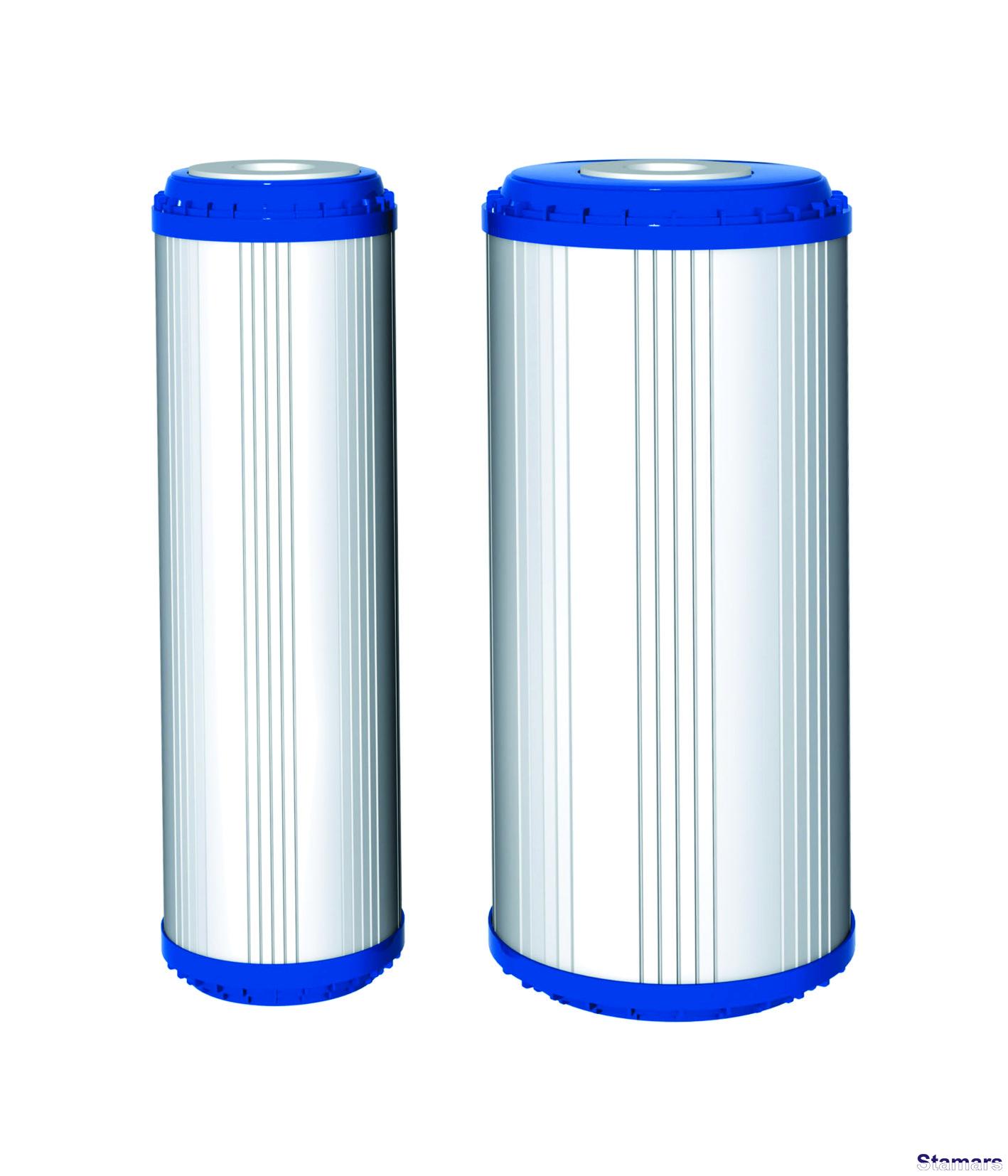 Kārtridži tiek izgatavoti no granulētas, aktīvētas ogles no kokosu riekstu čaulas, mīkstināšanas sveķes un KDF iebēruma. KDF – novērš baktēriju un vīrusu veidošanos, pazemina smago metālu un dzelzs koncentrāciju, kā arī attīra ūdeni no sērūdeņraža un pesticīdiem. Aktīvēta ogle no kokosu riekstu čaulas attīra ūdeni no hlora, fenola, benzola un organiskām vielām, uzlabo ūdens smaržu un garšu. Mīkstināšanas sveķe aizvieto kalcija un magnija jonus pret nātrija joniem.