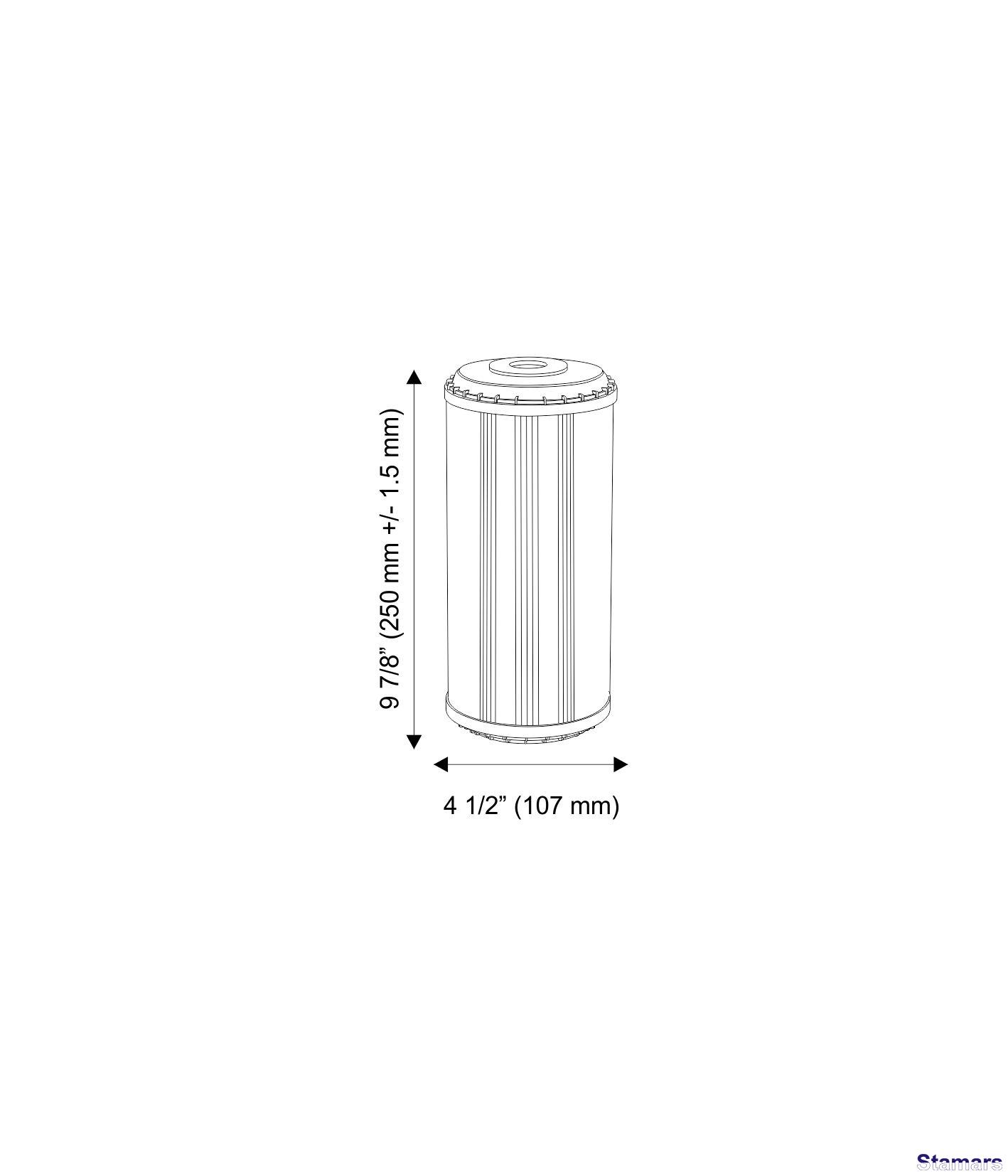 Izmērs (Augst. x Diam.) 10″BB: 250 (+/-1.5) x 107 (mm)