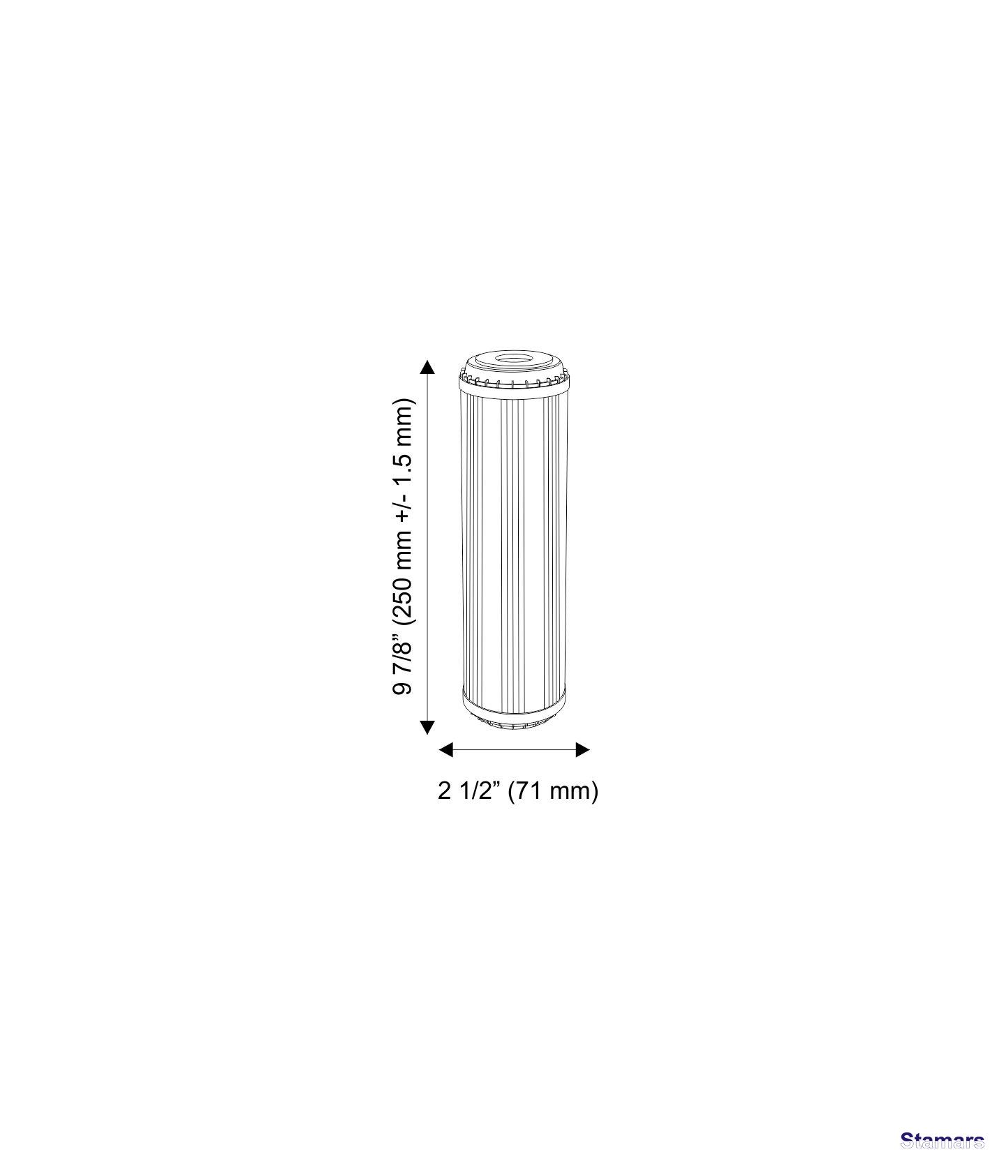 Izmērs (Augst. x Diam.) 10": 250 (+/-1.5) x 71 (mm)