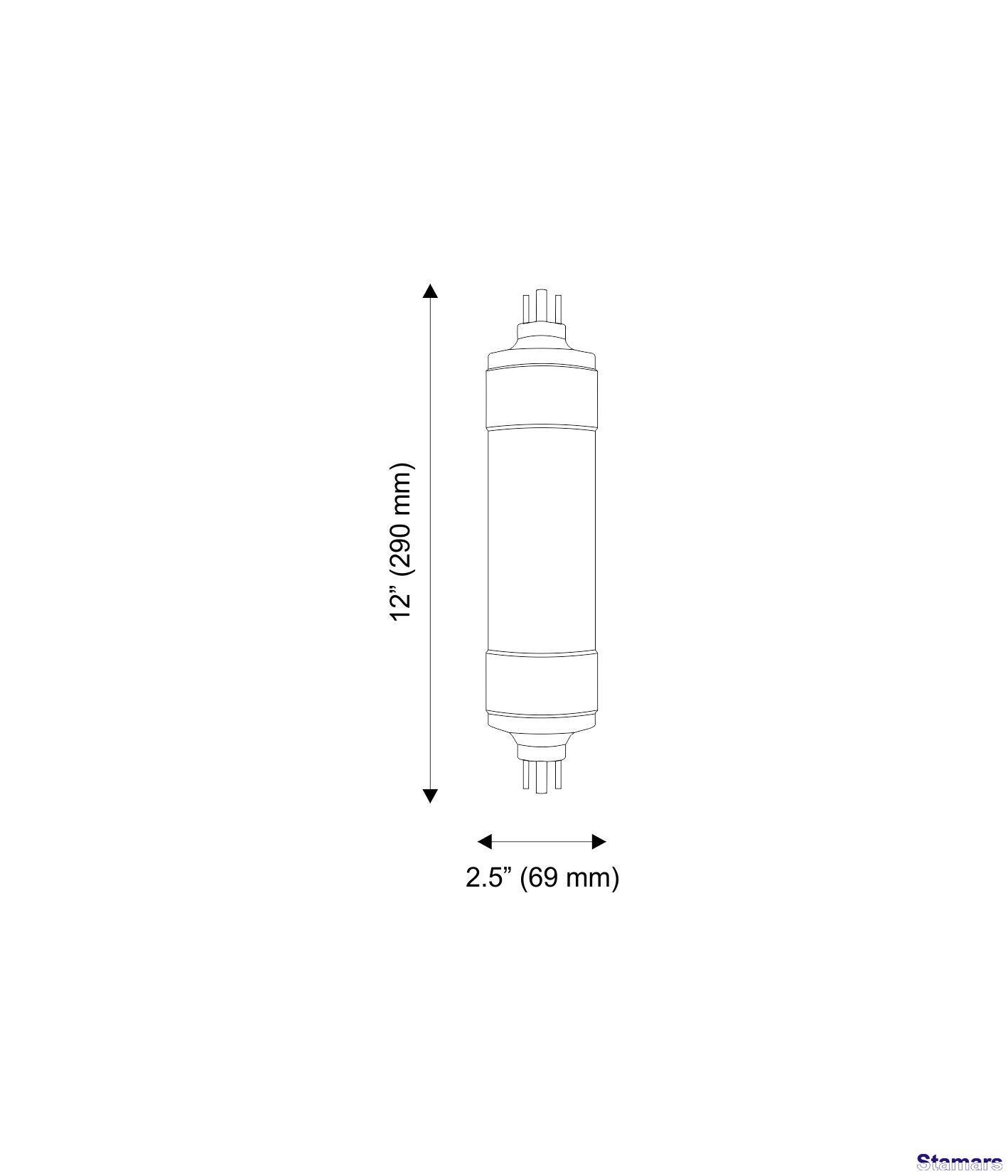 Izmērs (Augst. x Diam.) 12"x2.5”: 290 x 69 (mm)