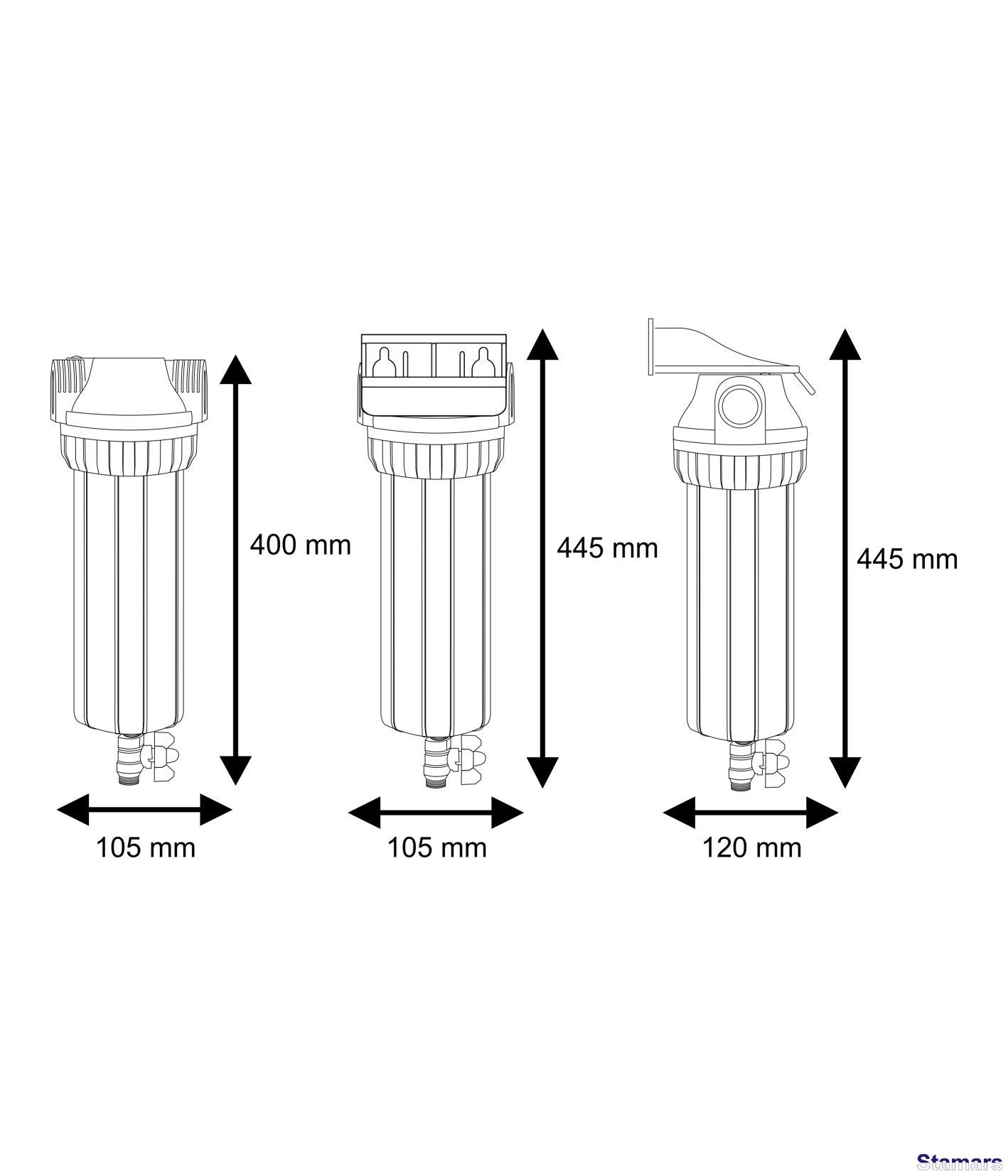 10” filtra komplekts: korpuss ar caurspīdīgu kolbu ar drenāžas ventili, atgaisotāju un misiņa vītņu ieliktņiem, kronšteinu, atslēgu un bakteriostatisko centralizācijas gredzenu. Filtra kolba ir aprīkota ar drenāžas ventili, kas dod iespēju izskalot suspendētas vielas no filtra kolbas neizņemot kārtridžu (piemērojams ar FCPNN sērijas vairākkārtējas lietošanas kārtridžiem).
