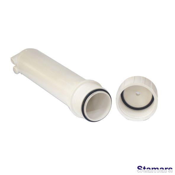 2.5" x 12” filtra korpuss ar baltu kolbu tiek aprīkots ar divām gumijas blīvēm galvā un kolbā. Var būt izmantots RO sistēmās un zem izlietnes filtrācijas sistēmās.