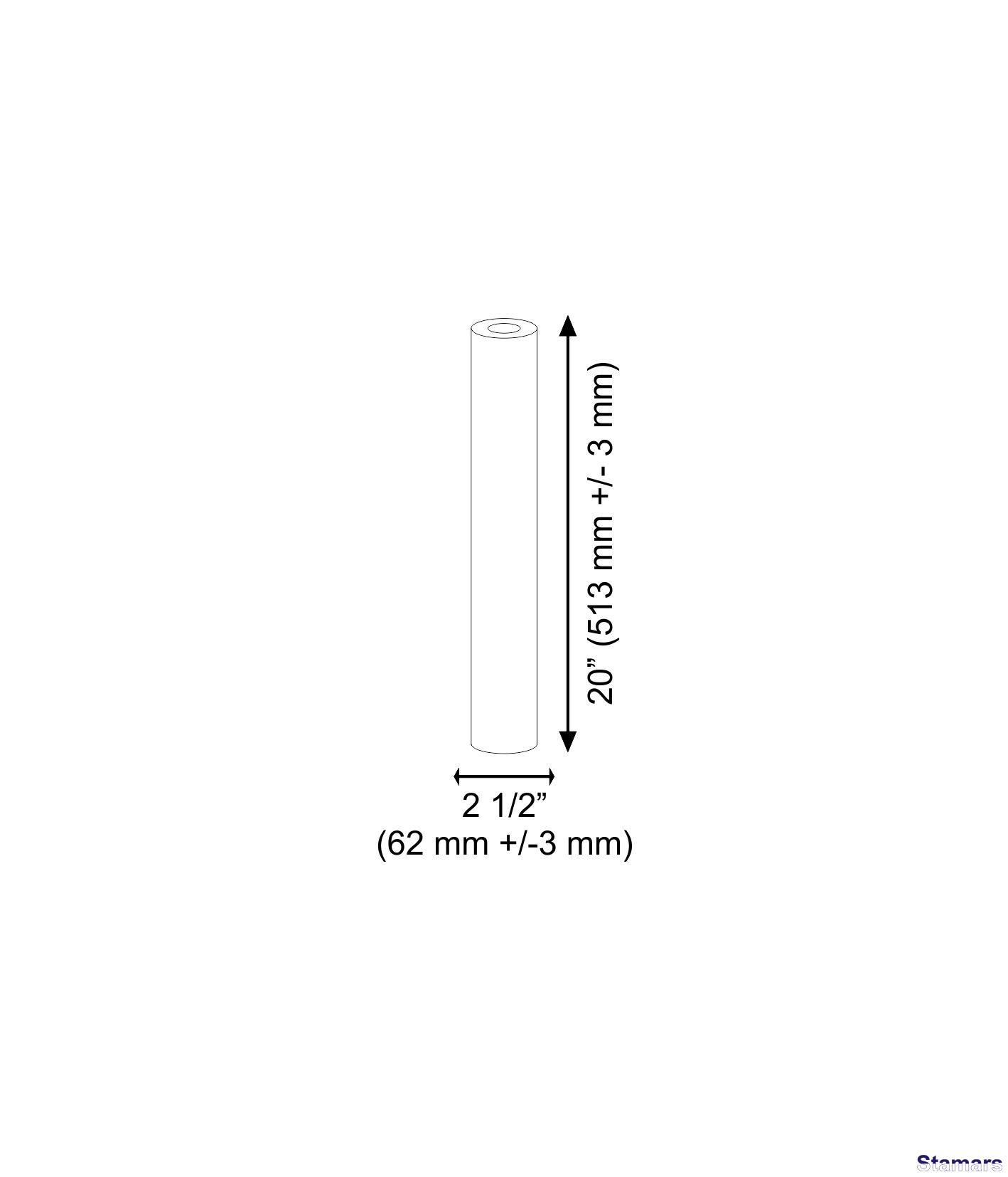 Izmērs (Augst. x Diam.) 20″: 513 (+/-3) x 62 (+/-3) (mm)