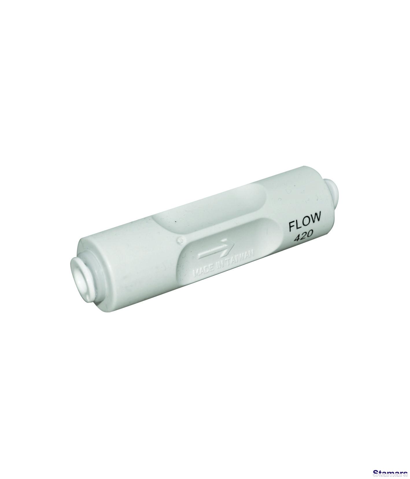 Plūsmas ierobežotājs Atgriezeniskās Osmozes fitrācijas sistēmām. Nosaka ūdens daudzumu, kas tiek izskalots kanalizācija.