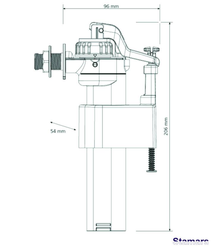 WC ieplūdes mehānisms, plastmasas vītne no sāna