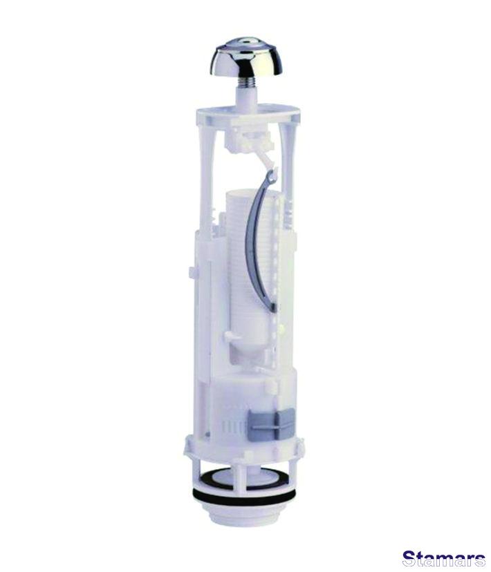 NF sertificēts kompakts dubultā tilpuma ūdeni taupošs skalošanas mehānisms, 10 gadu garantija, modelis ar kronšteinu, kas ļauj fiksēt tvertnes vāku ar iespējamu ievērojamu ekscentriskumu, Hromēta automātiski regulējama poga un krūze. Regulējams augstums no 282 līdz 430 mm, cauruma diametrs vāks no 16 līdz 50 mm, drenāžas cauruma diametrs no 58 līdz 72 mm. Maza regulējama skalošana, iepriekš nogriezta pārplūde, regulējams atlikušā ūdens līmenis. Piegādāts komplektā ar bļodas/tvertnes blīvējumu un tvertnes stiprinājuma skrūvēm.