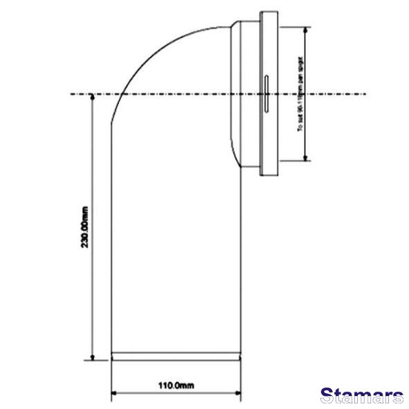 Kanalizācijas pieslēgums, garš 220 mm, leņķis 90 grādi. Ieplūde 90-118mm ar lūpu blīvējumu, izeja 110mm.